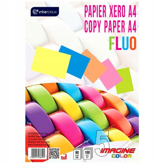 Kolorowy papier ksero formatu A4. Opakowanie zawiera 100 arkuszy kolorowego papieru