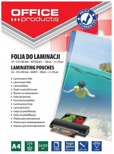 FOLIA DO LAMINACJI A4 216X303 80MIC BŁYSZCZ (100)
