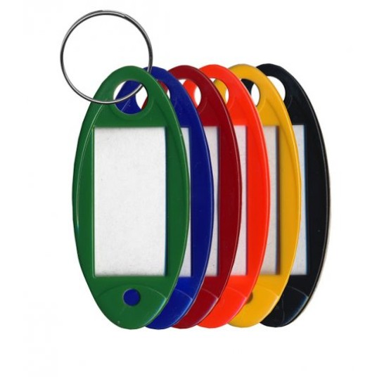 Identyfikator plastikowy z kółeczkiem do kluczy. Zawieszka jednostronna. W opakowaniu 6 szt. Mix kolorów! Produkt wykonany z wysokiej jakości tworzywa. Posiada białą karteczkę na opis. Okienko do wpisania np.numeru pokoju zabezpieczone jest transparentną folią. Niezbędne w każdym biurze, ułatwiają rozróżnianie kluczy.