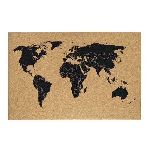 Tablica z nadrukiem mapy świata w kolorze czarnym.