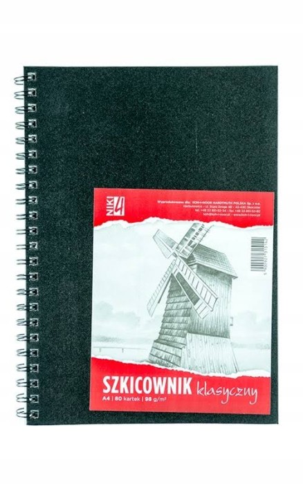 Zawiera kartki papieru o ziarnistej strukturze połączone spiralą. Okładki szkicownika są sztywne i doskonale nadają się jako podkładki.