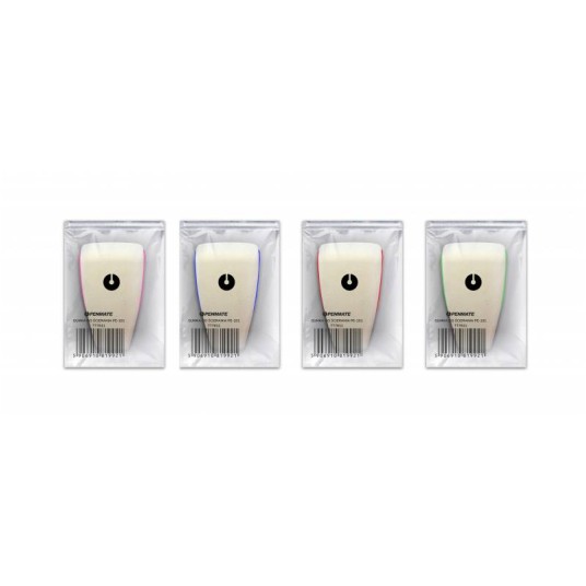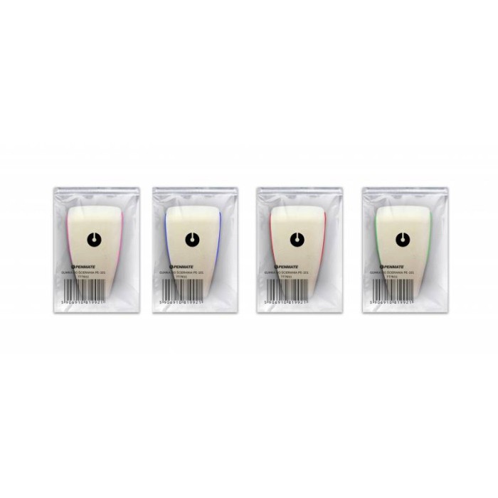 Gumka do ścierania usuwająca ołówek. Struktura papieru po użyciu gumki pozostaje nienaruszona. Wykończenia z tworzywa w czterech kolorach. Gumki pakowane pojedynczo w woreczek foliowy z nadrukowanym kodem kreskowym oraz w tubę po 24 sztuki w różnych kolorach wykończeń.Posiada certyfikaty zgodności z normą EN71