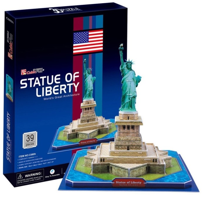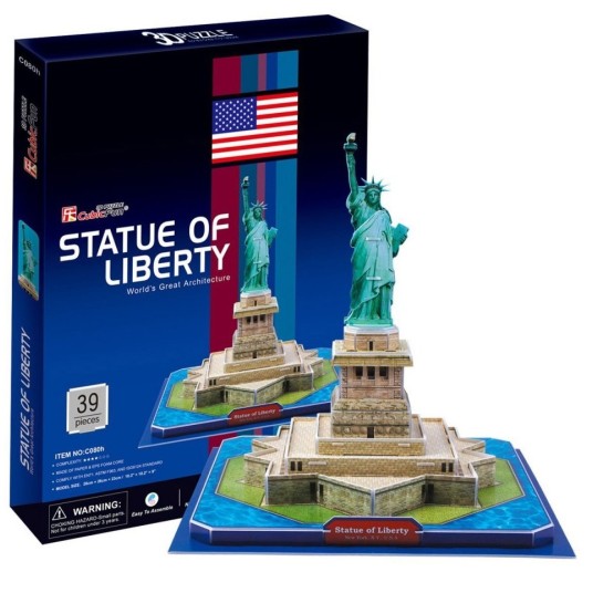 Puzzle 3D STATUA WOLNOŚCI (STATUE OF LIBERTY), to pasjonująca zabawa dla dzieci oraz kolekcjonerów architektury z różnych stron świata. W opakowaniu znajduje się 40 elementów puzzli, wykonanych ze specjalnego materiału przypominającego piankę. Puzzle są ponumerowane, ponacinane i umieszczone na arkuszach.